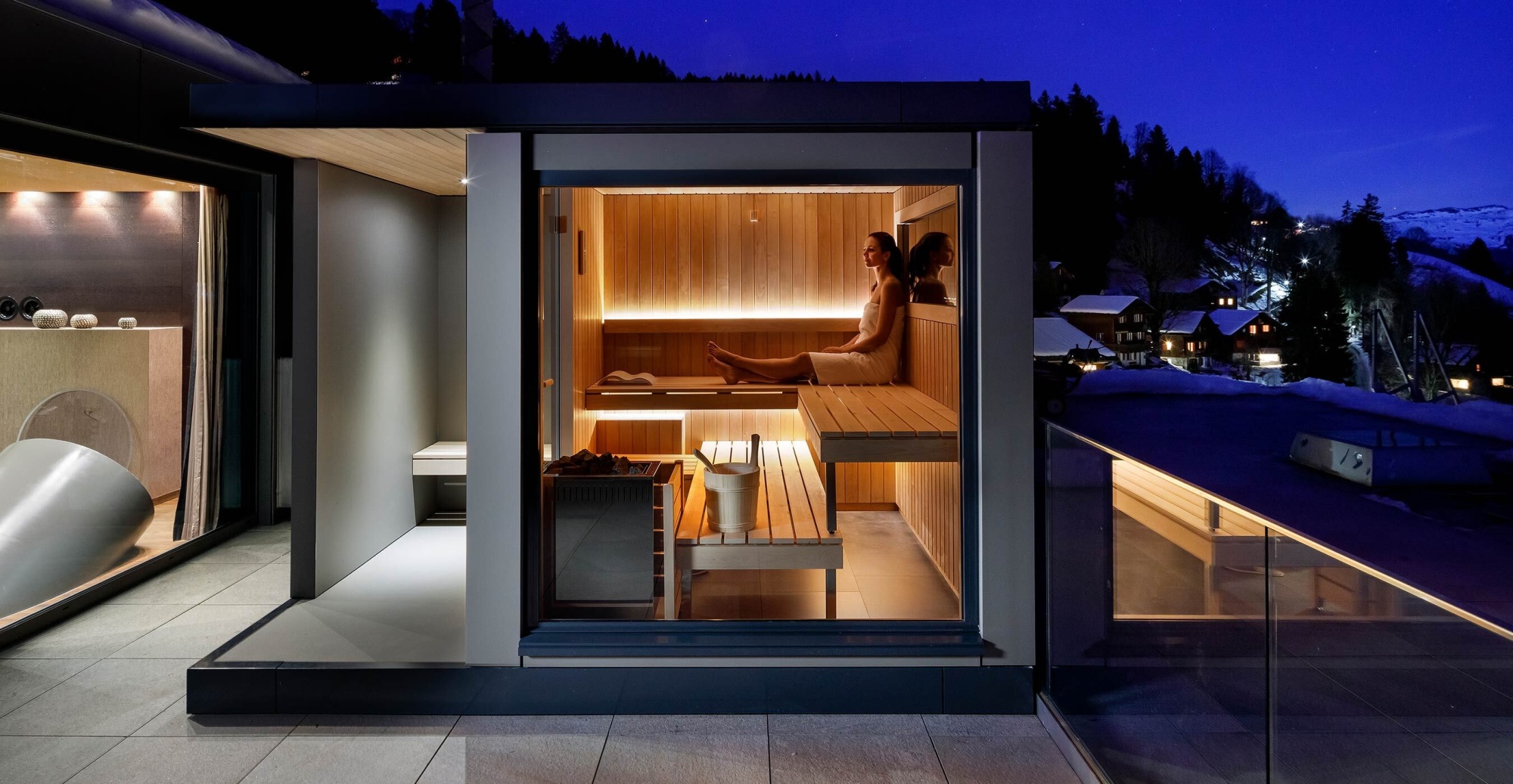 Wir haben ein «Penthouse für Familien» gebaut. Zuoberst auf dem Dach thront eine doppelstöckige Suite mit ganz besonderen Highlights: Die Paradies-Suite «1001 Nacht».